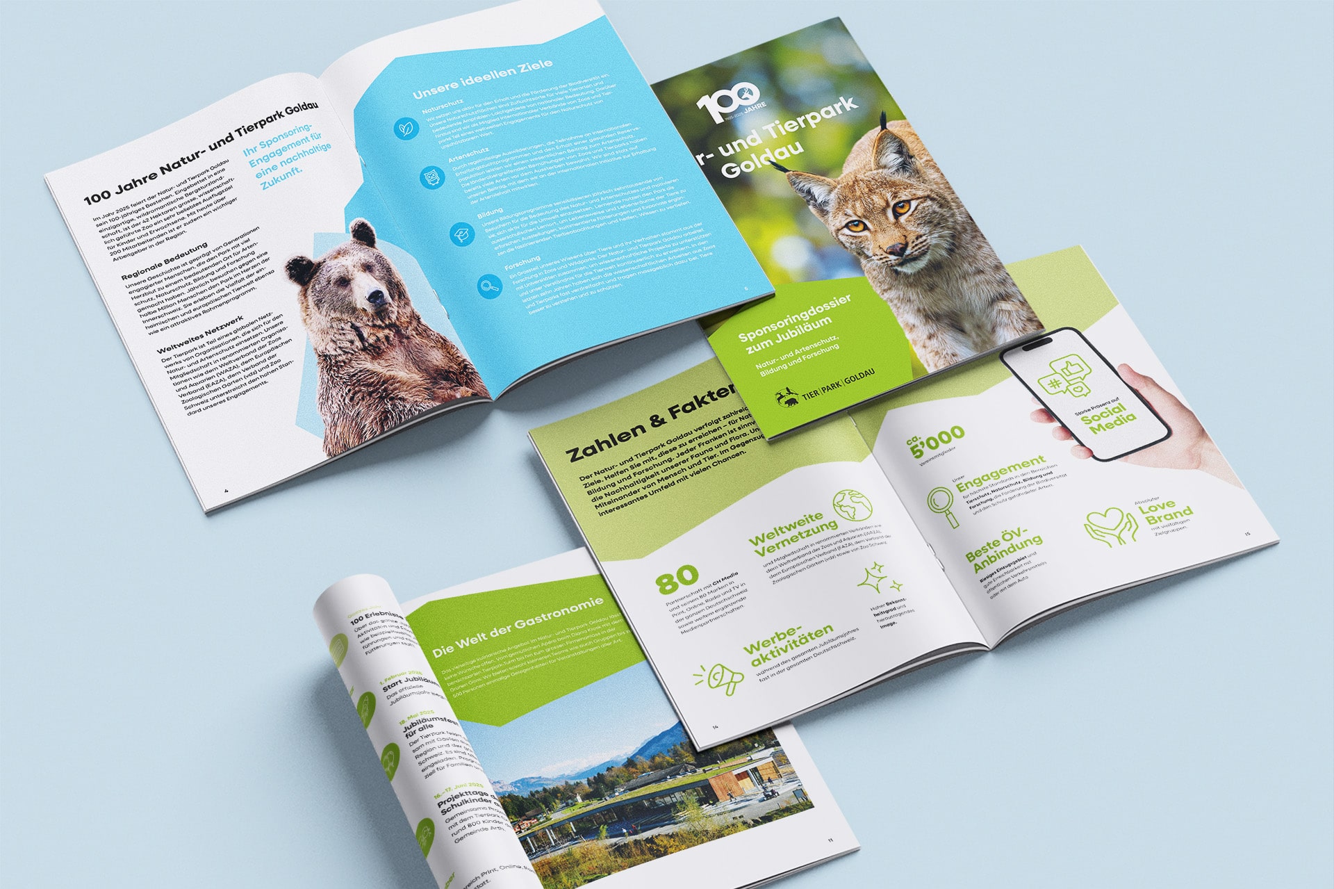 Zum 100-Jahre-Jubiläum 2025 haben wir dem Natur- und Tierpark einen komplett frischen Anstrich verpasst. Das Corporate Design ist authentisch, naturgetreu und unverwechselbar stilbildend. Es übersetzt Elemente der Natur- und Tierwelt in eine moderne visuelle Sprache, die sinnbildlich für den neuen Tierpark steht. Mit markanten, leuchtenden Farben, einer neuen Schrift und einem grafischen Element als Referenz für das ikonische neue Eingangsgebäude. Es nimmt die Winkel der Architektur auf.